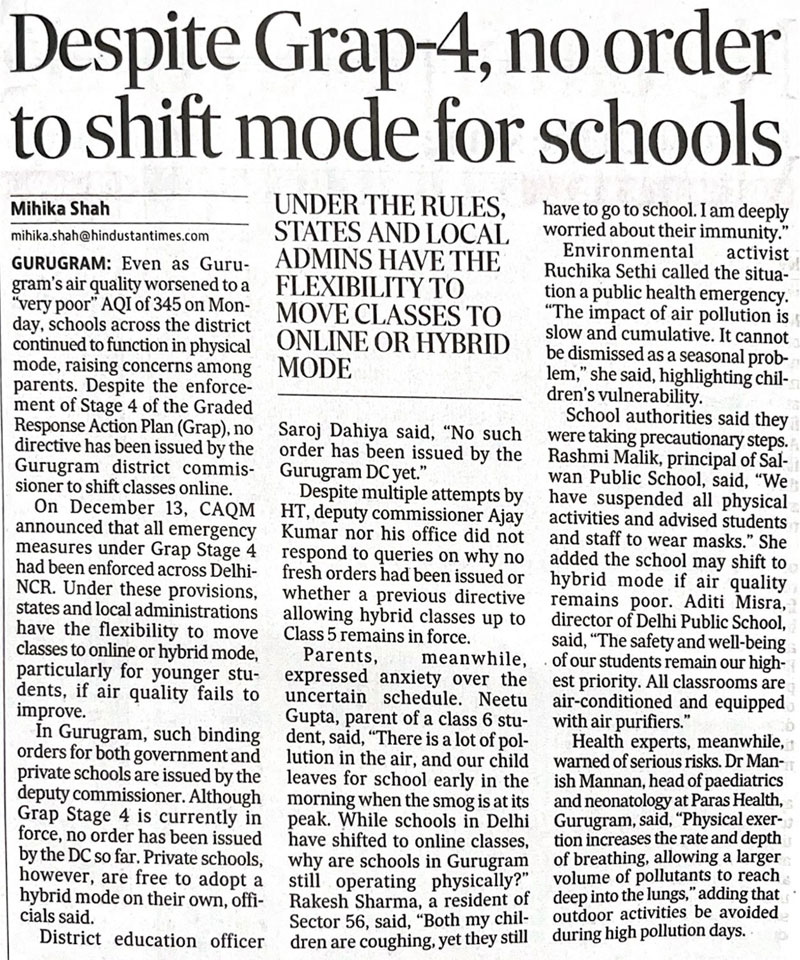 17 November 2025 Air pollution is the unfortunate part of the lives of the people of Delhi NCR and many cities of northern India.